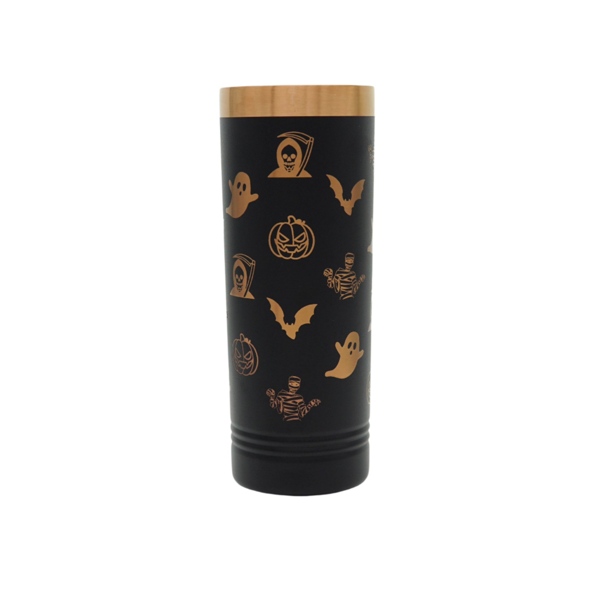 Get in the Halloween spirit with Would Could's easy to hold skinny, stainless steel, insulated tumbler. It will keep your hot drinks hot and your cold drinks cold for up to 12 hours.