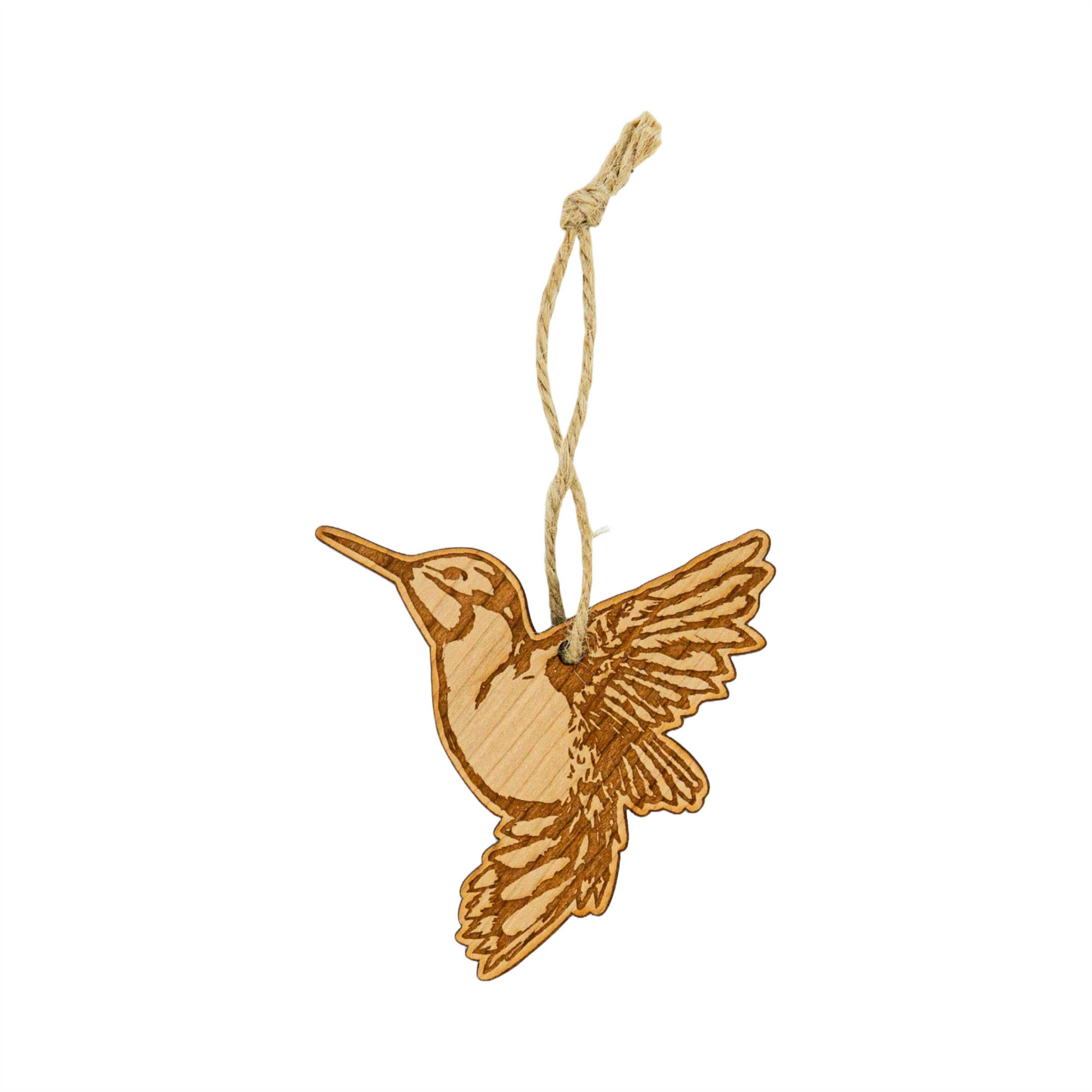 Hummingbirds are known to represent positivity - beauty, intelligence, joy, my amazing grandmother. Celebrate all of these traits and more by hanging our cherry wood hummingbird ornament on your tree this holiday season.