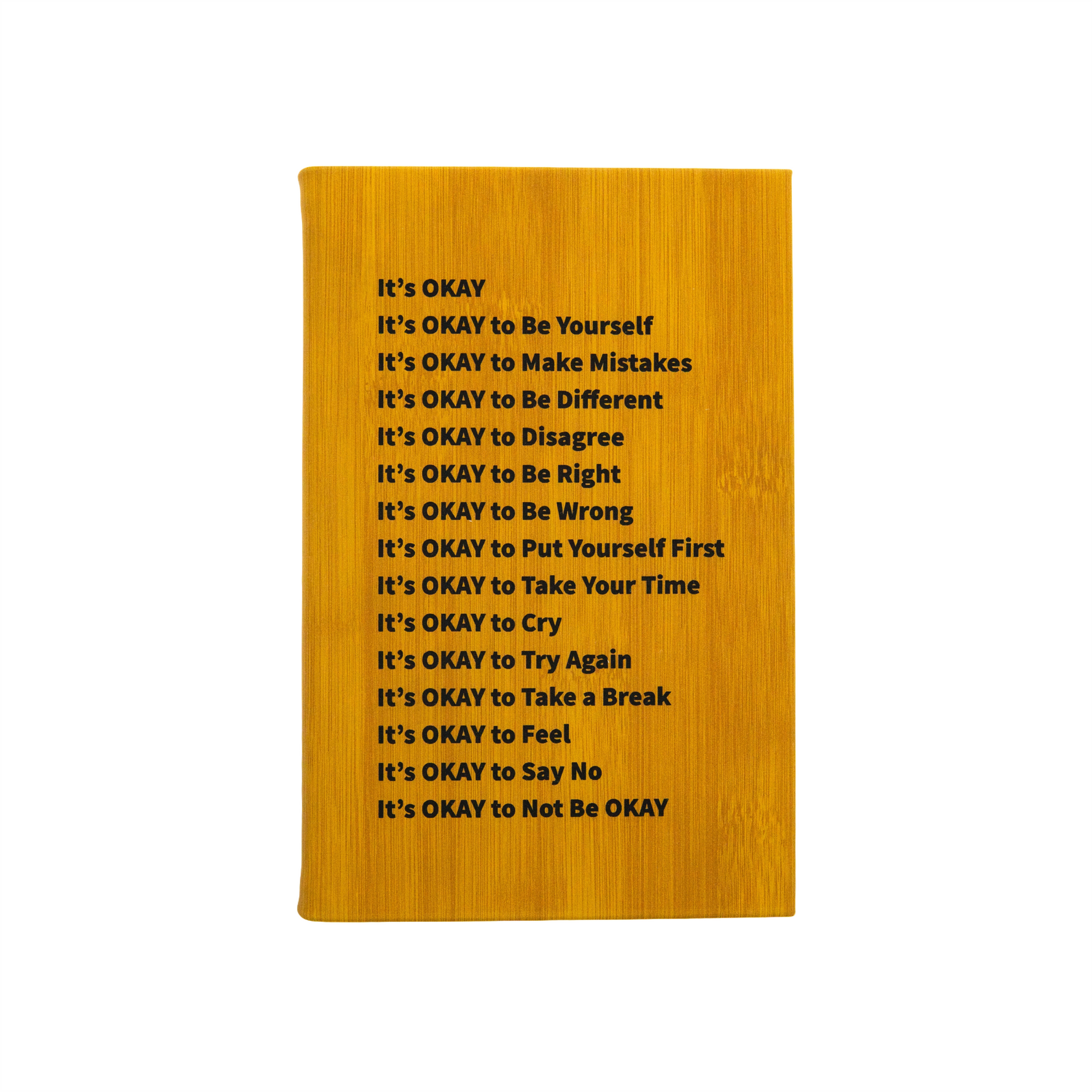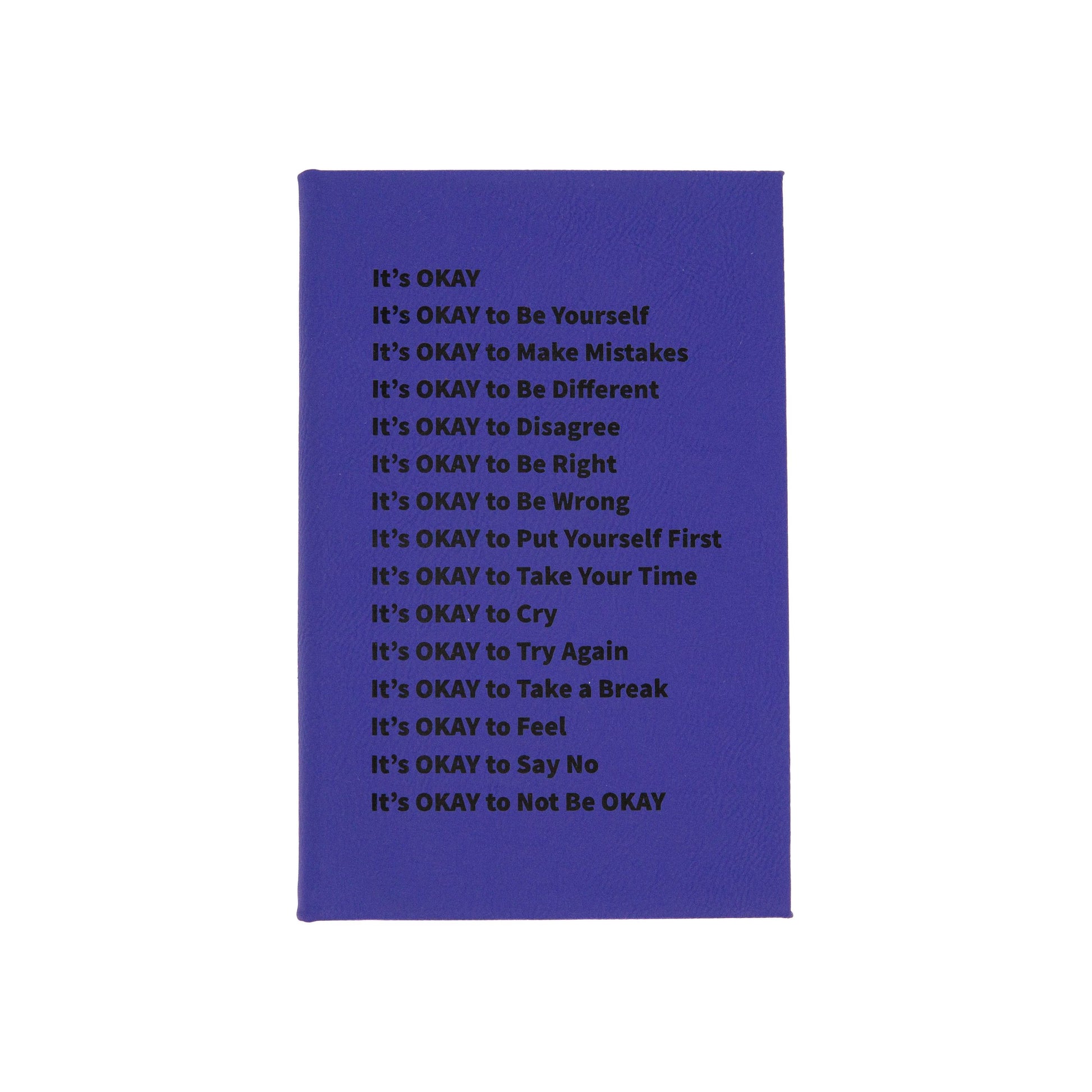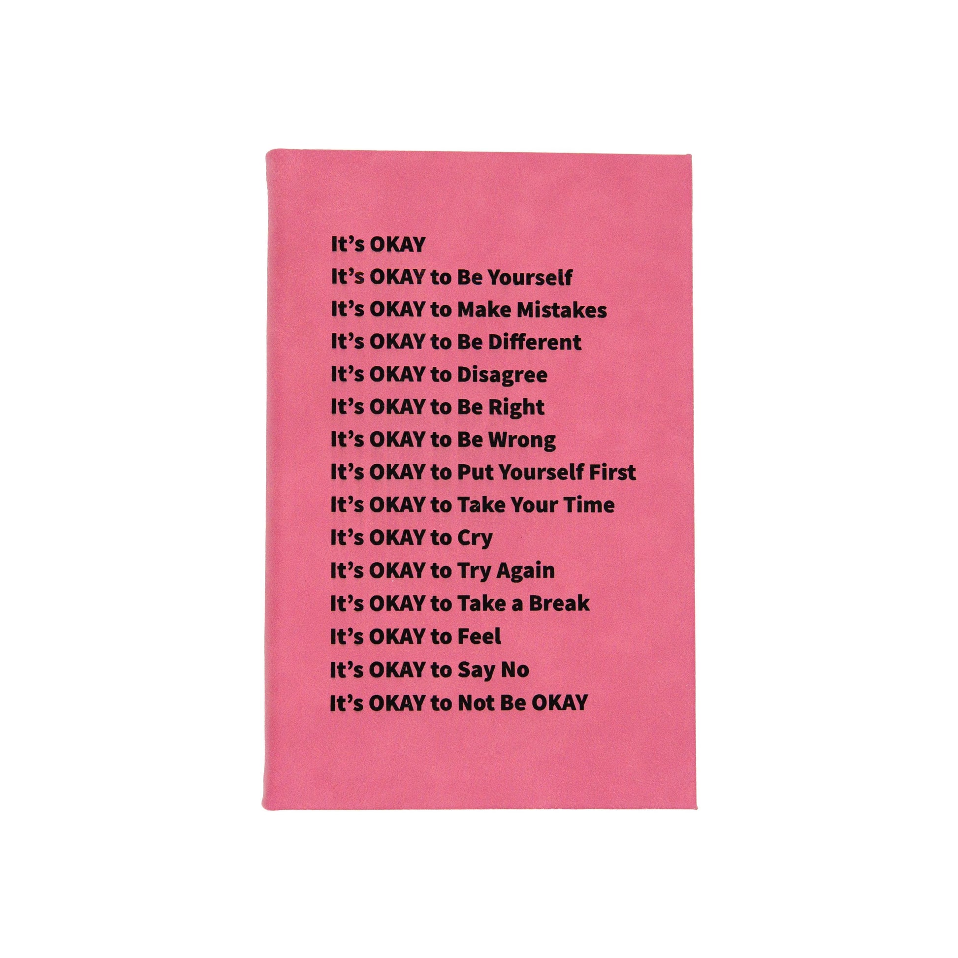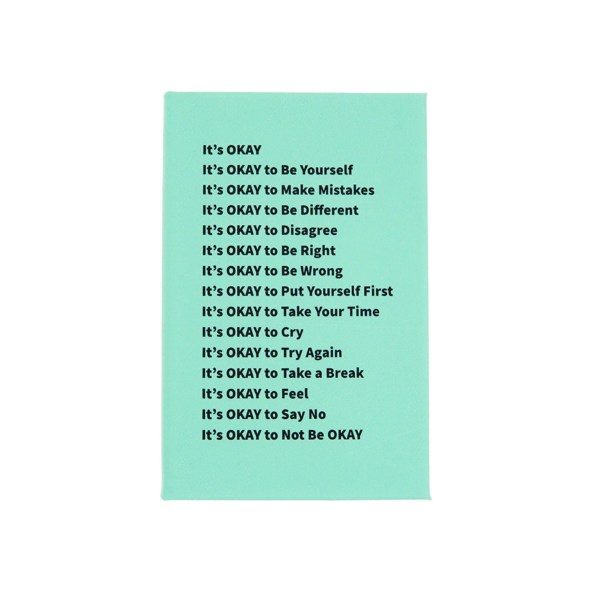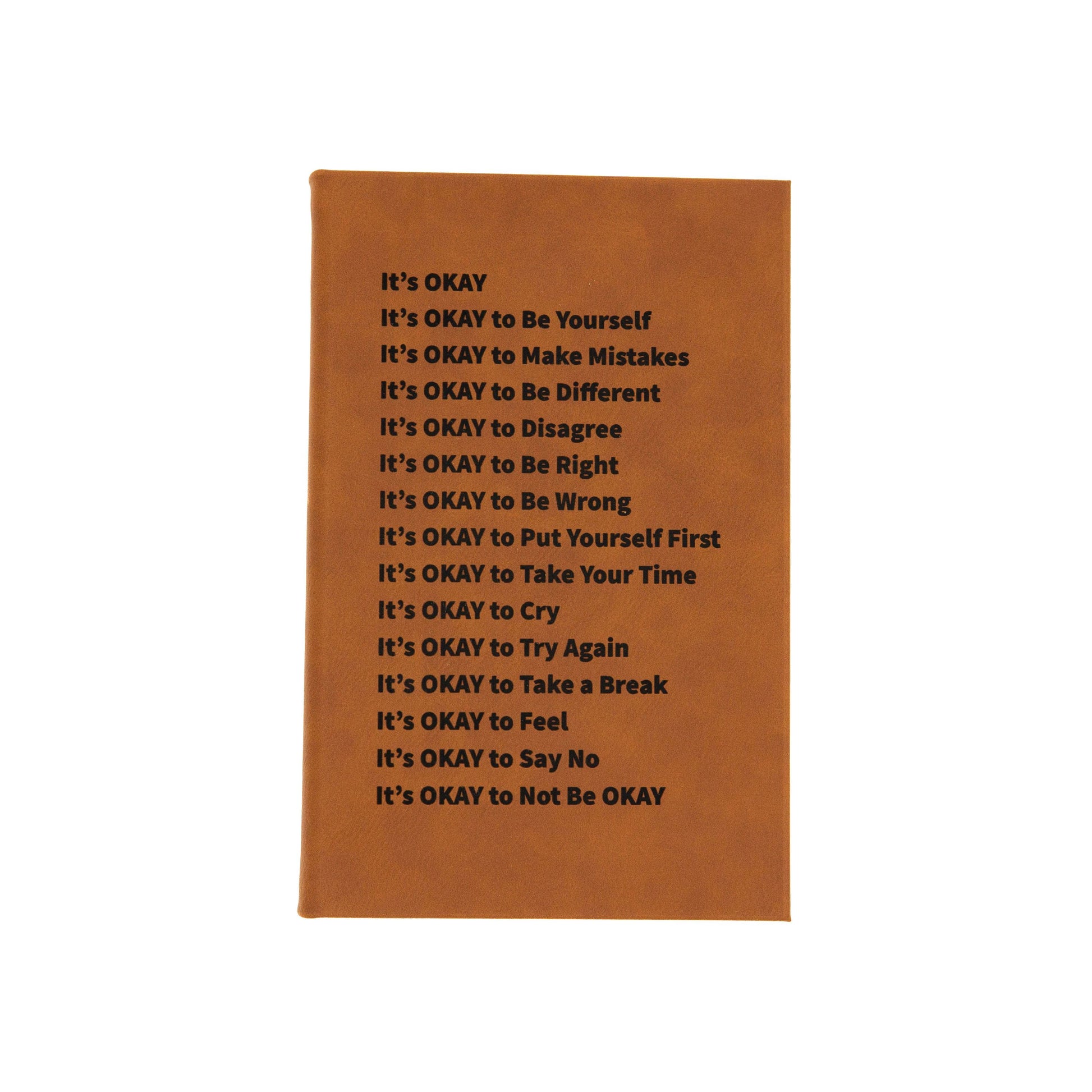 "It's Okay". Would Could's vegan leather, blank sketchbook is imprinted with heartfelt reminders that celebrate self-acceptance and authenticity. We invite you to embrace your true self with every stroke of your pen.