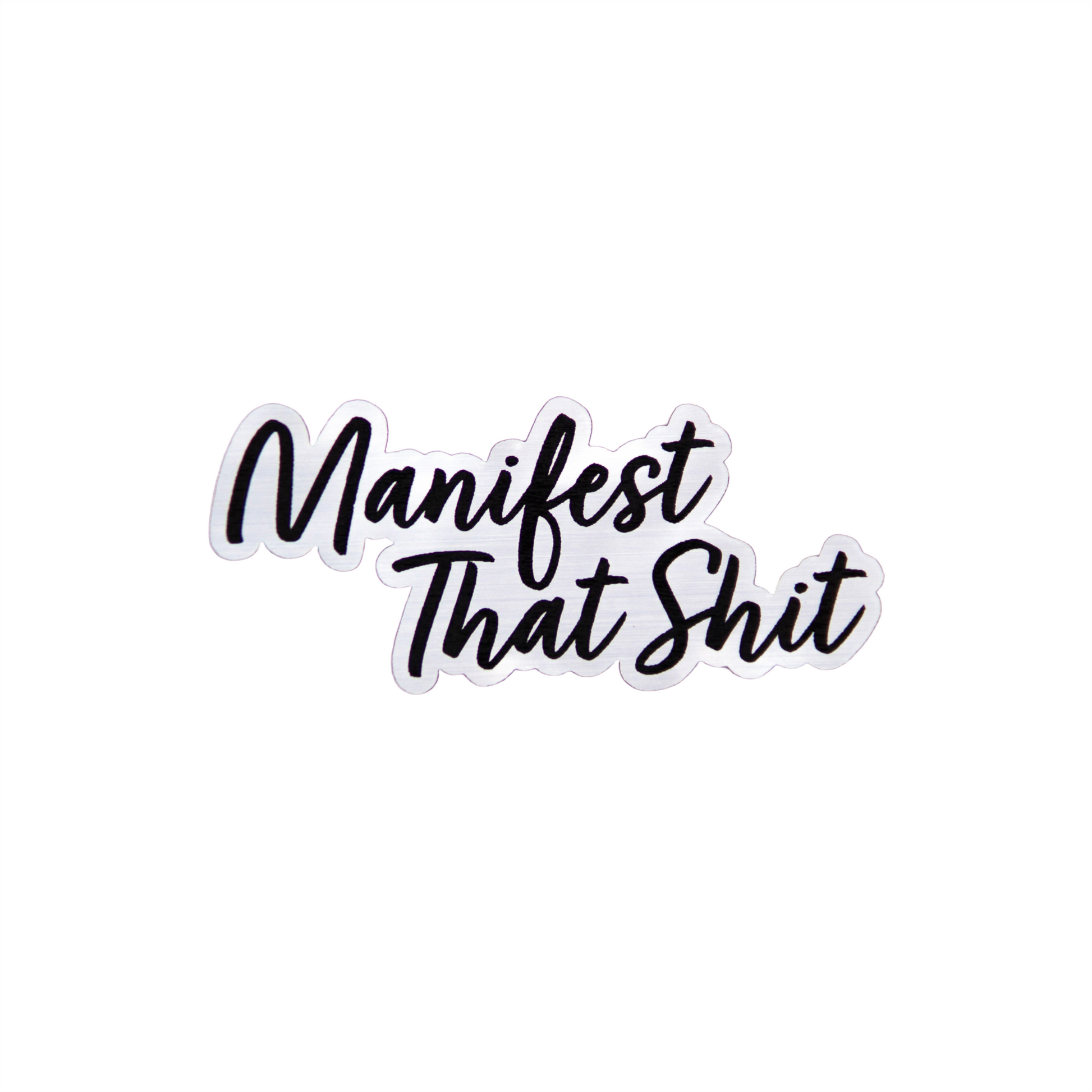 "Manifest that Shit". Stick this waterproof, UV stable sticker onto your car, water bottle, computer, etc. and turn those positive thoughts and ideas into reality.
