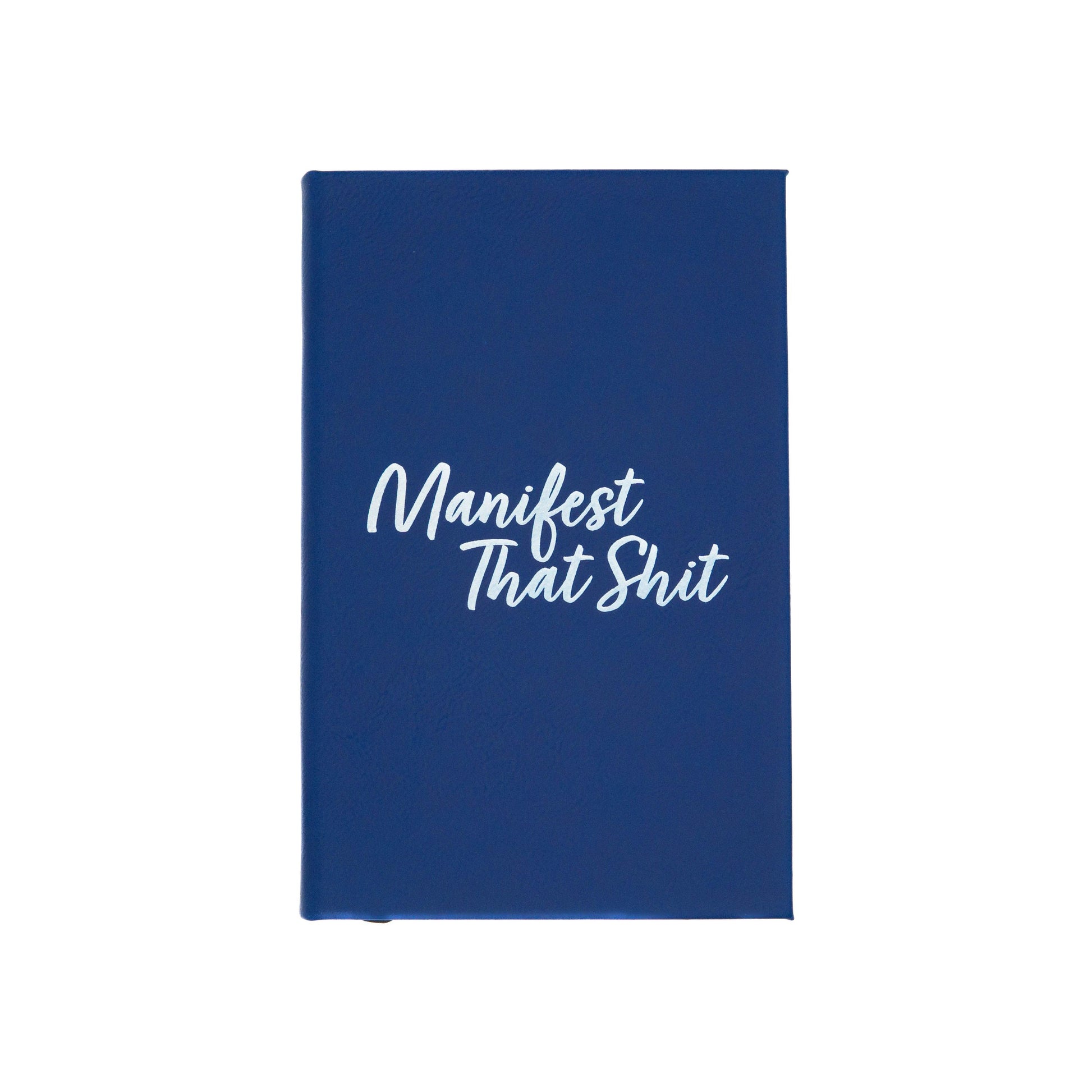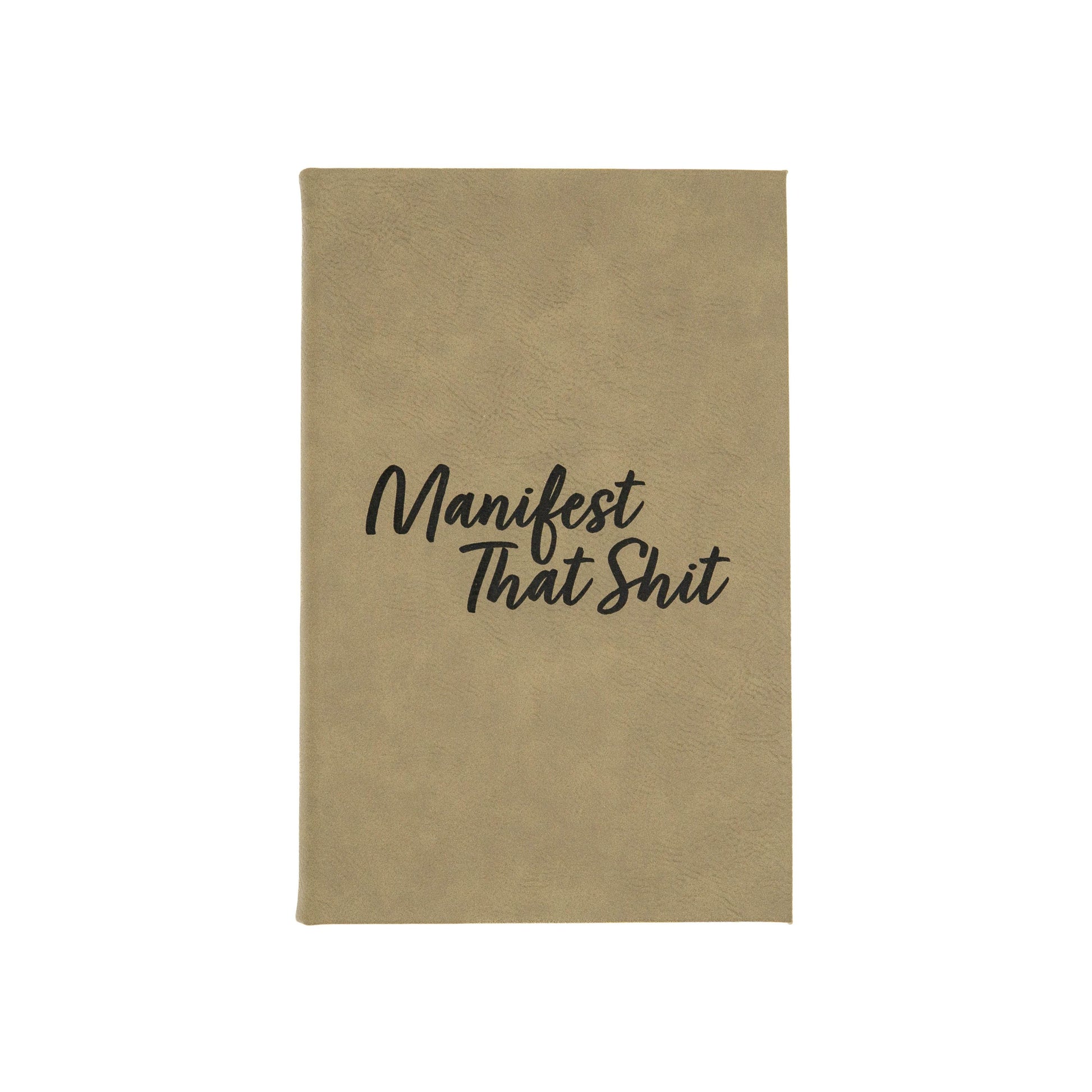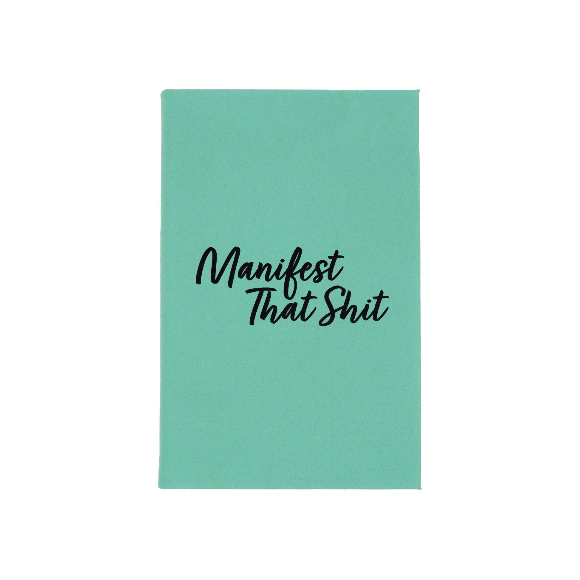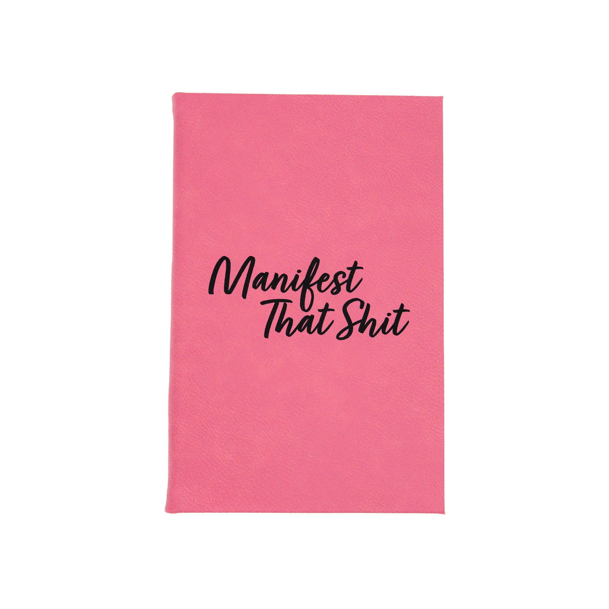 "Manifest That Shit". Turn those ideas into reality with Would Could's vegan leather blank sketchbook. It's the perfect place to draw all of your thoughts, dreams, prayers, and plans. Pair it with our "Manifest That Shit" vegan leather, refillable pen.