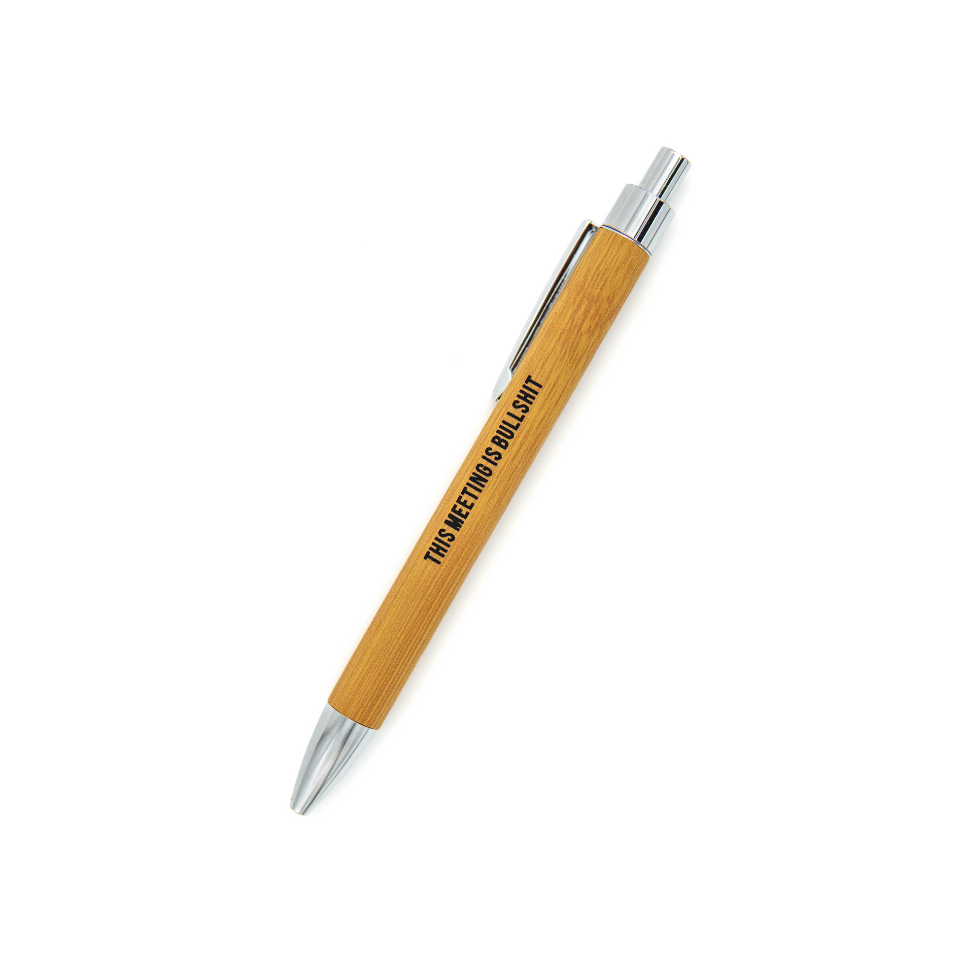 "This Meeting is Bullshit" -- We've all been there. Now you can say it without saying it with Would Could's smooth writing, vegan leather, refillable pen. It's the perfect accessory for any modern professional with a sense of humor.
